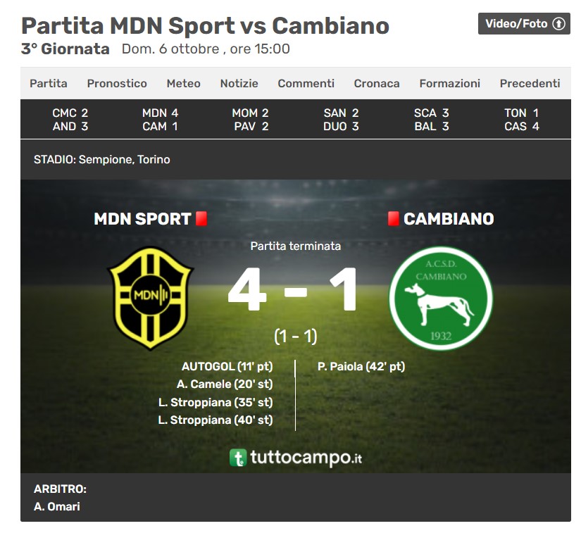 MDNSPORT – CAMBIANO 4-1