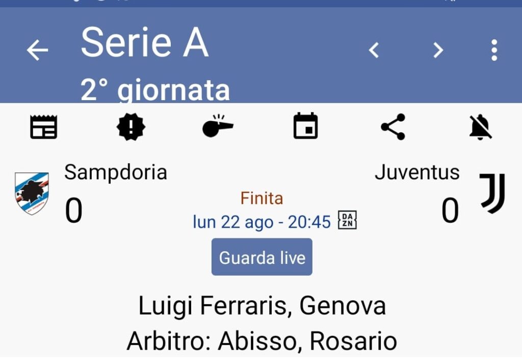 Arbitro 6 Ha arbitrato discretamente bene solo nel finale la partita gli è sfuggita di mano e ha fischiato 3-4 falli alla Samp che erano del tutto inesistenti. Per fortuna non ha fatto danni. Fra l’altro negli ultimi 15 minuti forse se ne giocano due con i doriani sempre per terra. Anche i 6 minuti di recupero in questo caso sembrano abbastanza pochi.