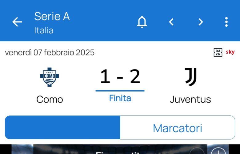 Juventus 6 La Juventus onestamente gioca una partita bruttina dove il Como per lunghi tratti la mette in difficoltà ne esce vincente un poco fortunosamente grazia a due gol di Kolo Muani che nel primo caso se lo inventa da solo e nel secondo caso è una grossa imprudenza del portiere avversario che ci regala un rigore insperato. Ottimi i 3 punti speriamo ci diano morale ma la prestazione onestamente è quella che è.